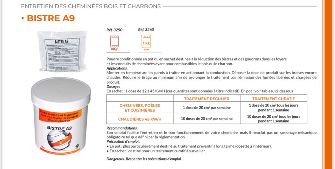 Entretien Poly Flammes (ramonage compris) : 120€ supplément 15€ conduit maçonné